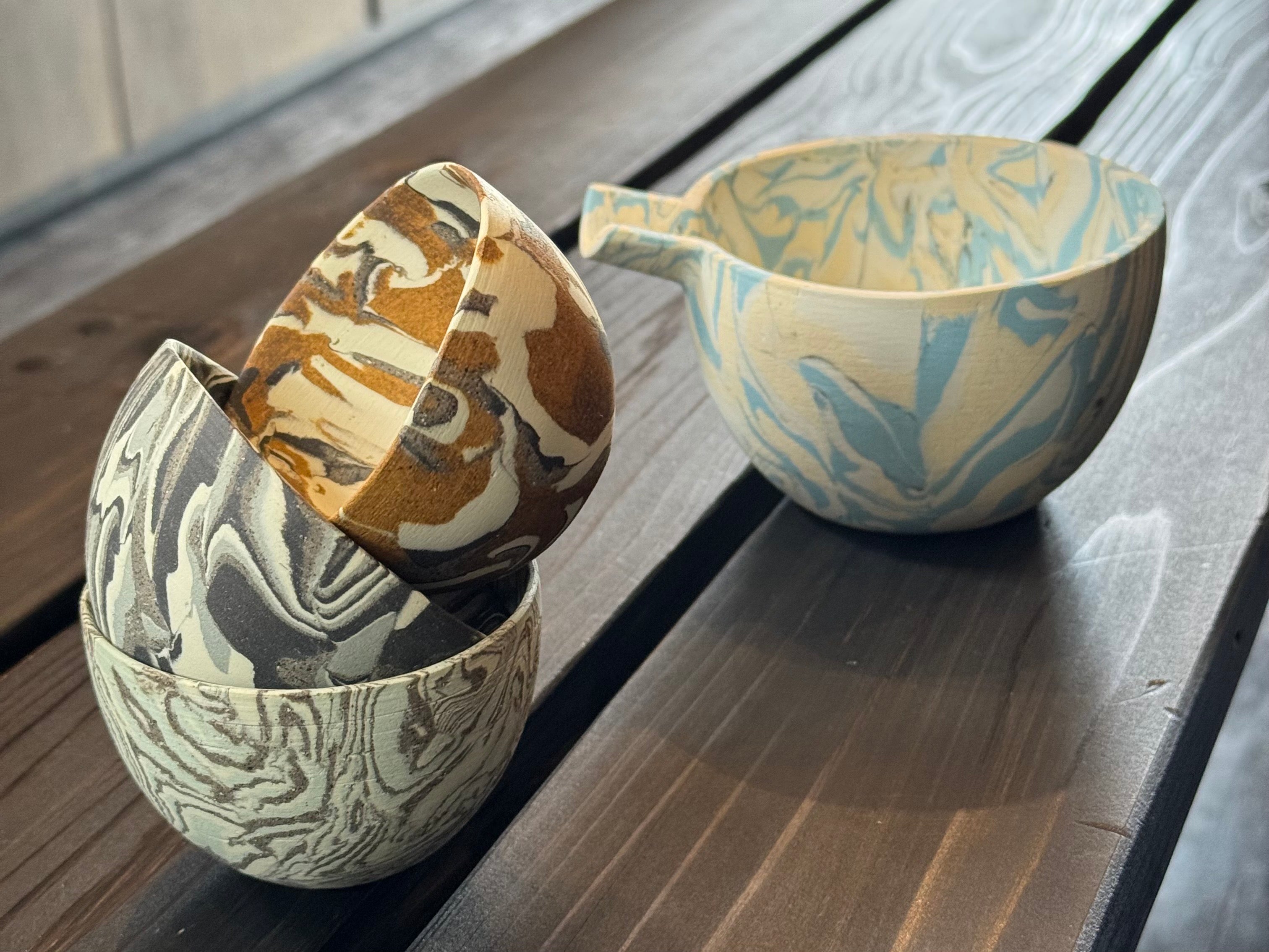 作り上げた練り込みのうつわ